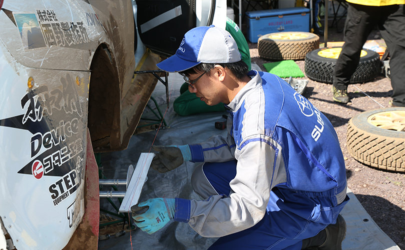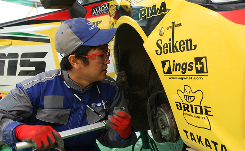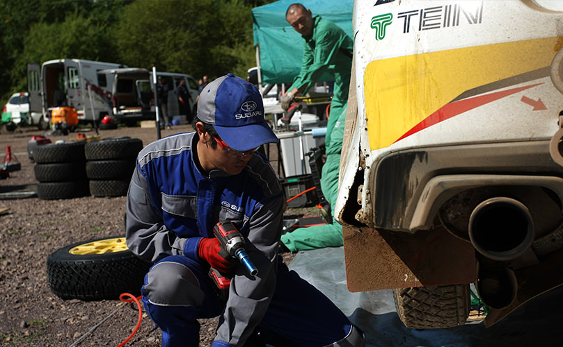 今回初めて参加しましたが、まず驚いたのは通常走行では壊れることのないドライブシャフト、トランスミッション、ターボチャージャ―等にまで不具合が及ぶというラリーの過酷さです。ドライバーの鎌田選手から「SUBARUにはシンメトリカルAWDによって得られる安定性や思った通りに動く安心感がある」と言われ、誇りに思いました。